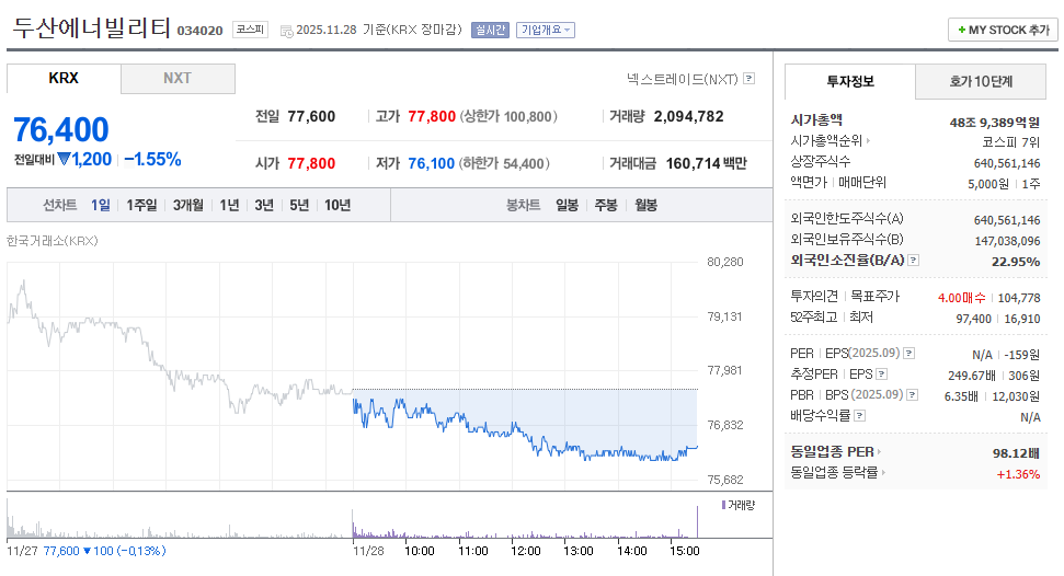 - • **관망 후 진입:** 현재의 높은 PBR과 재무적 리스크를 고려하여, **실제 SMR 및 해상풍력 대규모 수주가 확인되거나 재무구조가 개선되어 유보율이 상승하는 시점**까지 관찰하는 것이 바람직합니다.