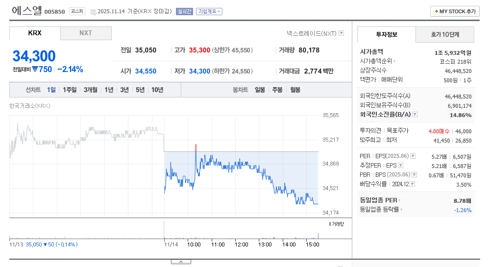 에스엘은 현재 약 3만원대 중반에서 거래되고 있으며, PER은 약 6~7배입니다. 이는 실적 대비 저평가라고 볼 수 있는 수준입니다. 자동차 업황은 경기 변화에 따른 민감도가 있지만, 에스엘은 전기차·내연기관차 모두에 부품을 공급하는 구조라 특정 시장에 치우치지 않는다는 이점이 있습니다.