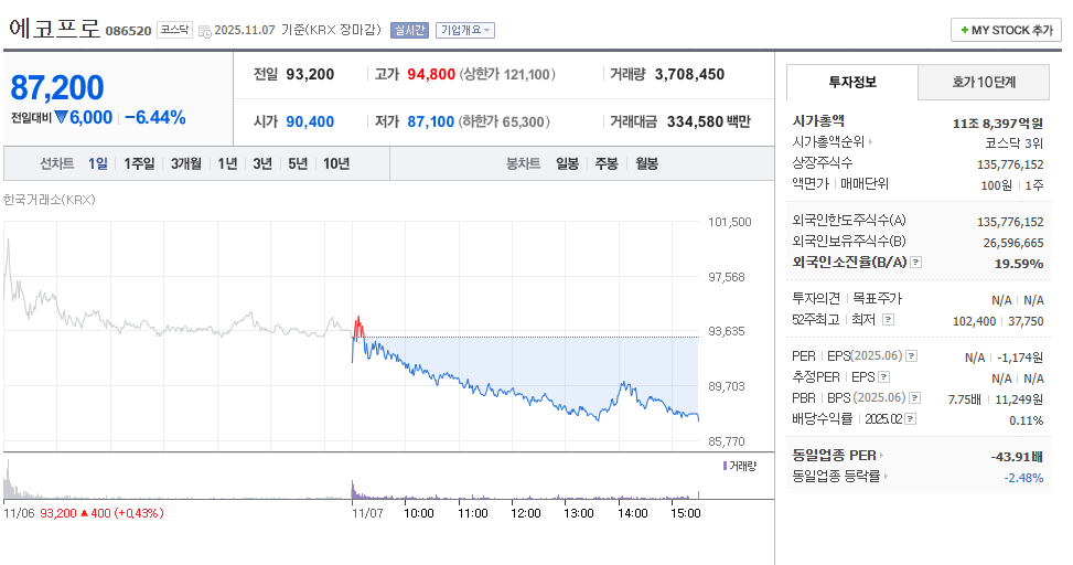 - 주가: 87,200원 (-6.44%)