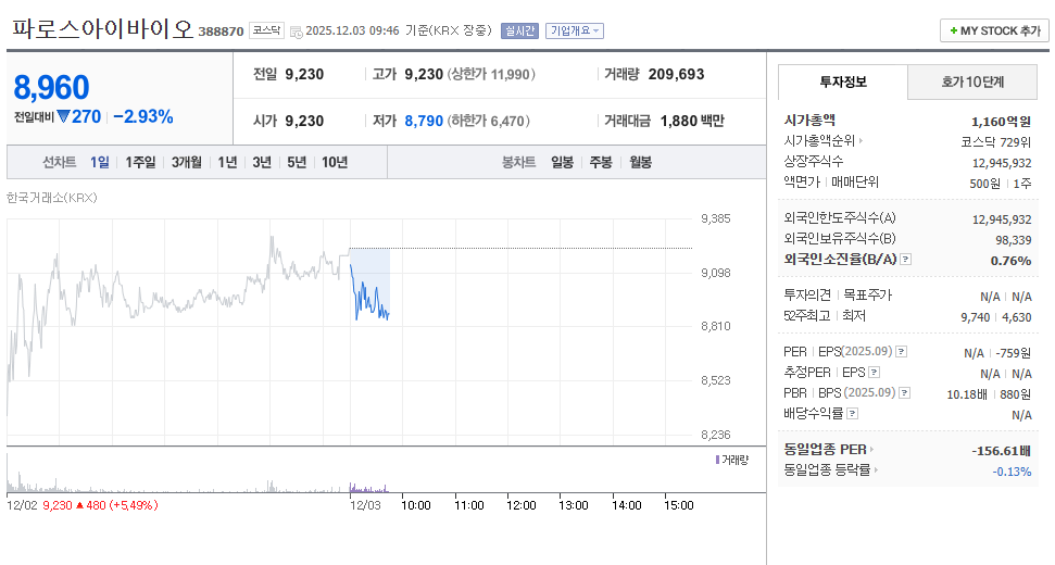 파로스아이바이오는 일반적인 제조 기업과 달리 **기술 특례 상장**된 기업입니다. 즉, 현재 돈을 벌지 못하더라도 **미래 기술 가치**만으로 상장된 회사라는 뜻입니다. 따라서 재무제표를 해석할 때 다음과 같은 리스크를 반드시 이해해야 합니다.